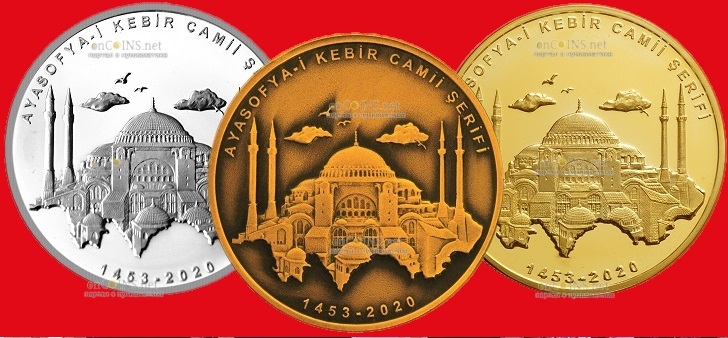 В 2020 году Центральный банк Турецкой Республики (Türkiye Cumhuriyet Merkez Bankası) выпускает памятную серебряную монету 20 лир мечеть Айя-София. Она будет отчеканена на Государственном монетном дворе Турции.