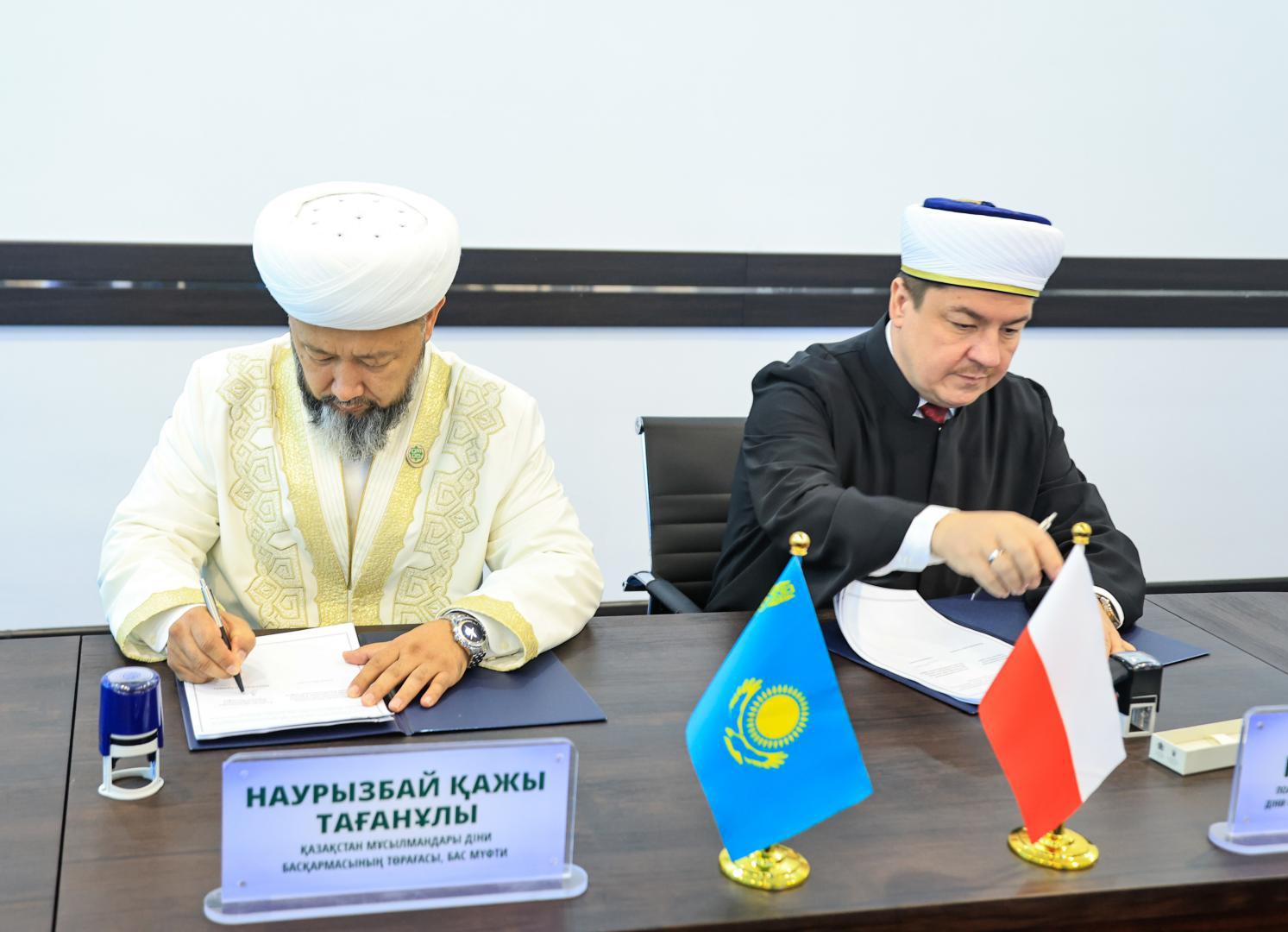 Сегодня в Астане председатель Духовного управления мусульман Казахстана Наурызбай кажы Таганулы и председатель Высшего управления мусульманского религиозного союза Республики Польша Томаш Мискевич встретились и подписали двусторонний меморандум.