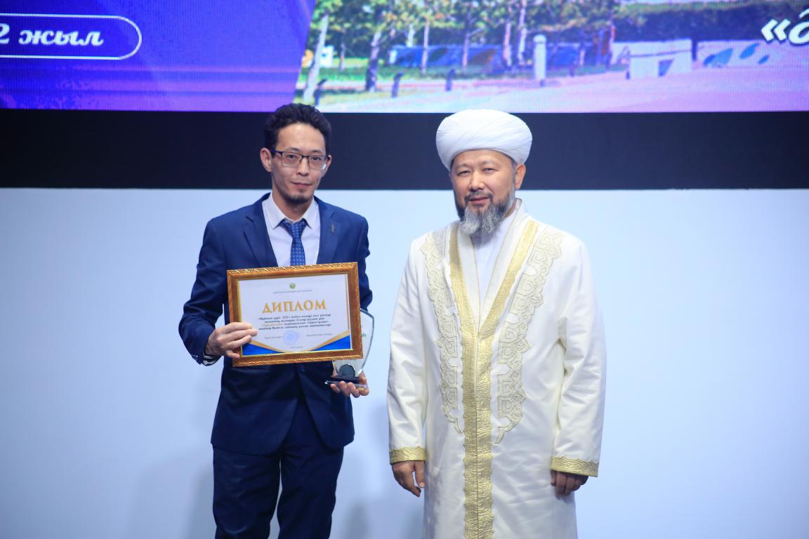 Верховный муфтий Наурызбай кажы Таганулы специально принял участие в данном мероприятии и вручил диплом Главному редактору сайта Айдосу Имантаю.