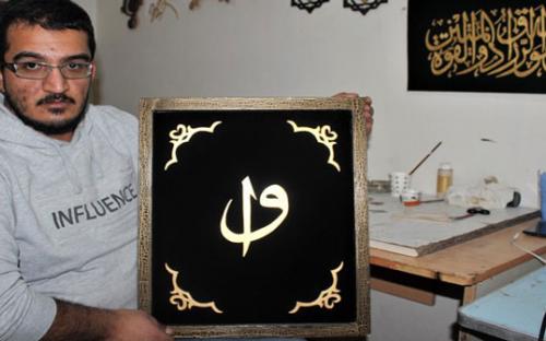 Ахмет Саид Гюль открыл небольшую мастерскую, где создает украшения для интерьера с исламскими мотивами и именами Аллаха в технике нахт.