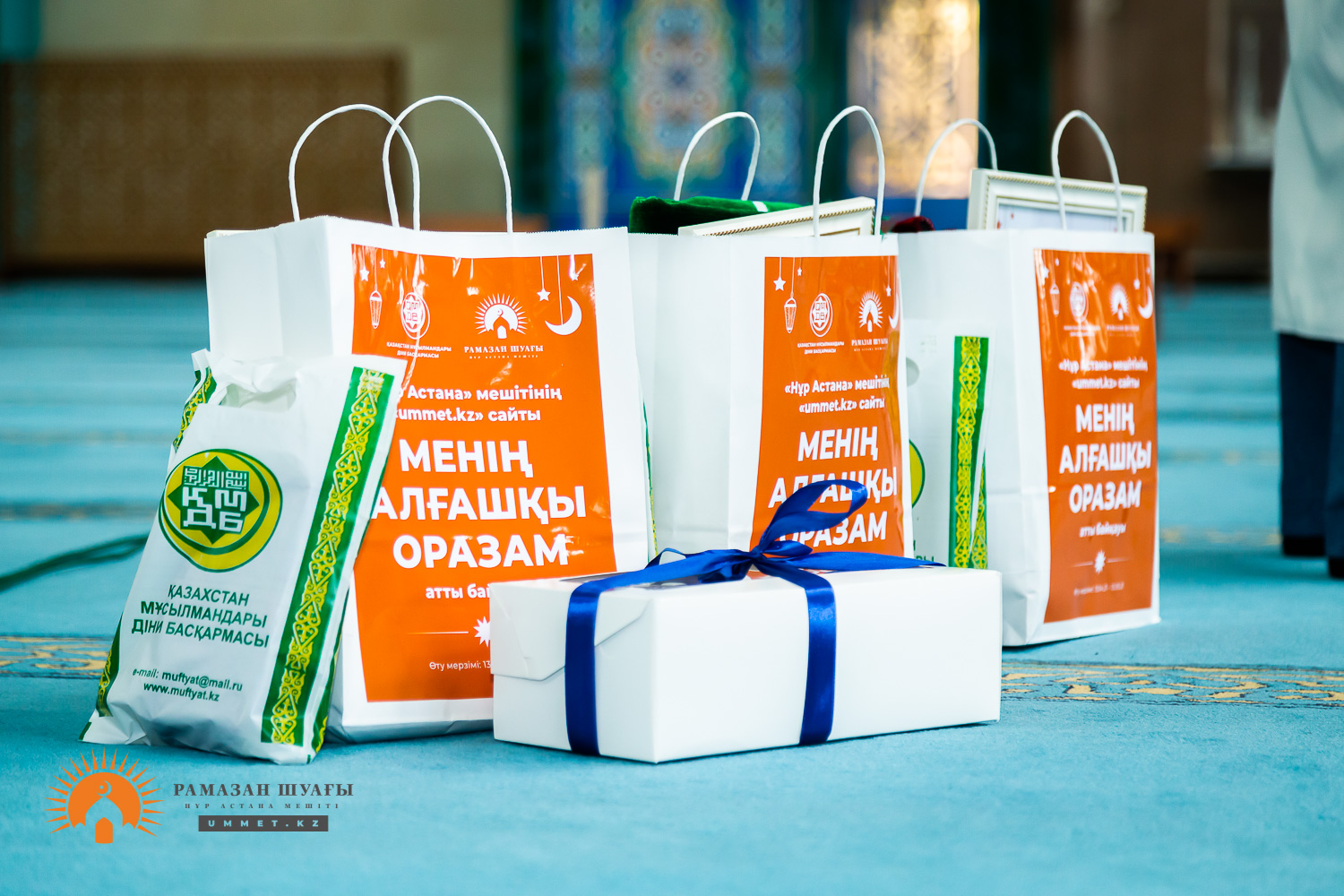 Одним из главных призов конкурса стал оригинал Кyр`ана и его перевод на казахский язык. Среди победителей были те, кто читал Хатм Кyр`ан во время Рамадана. Мы узнали об этом, прочитав присланные на конкурс работы, что очень впечатлило нас и порадовало. В завершение церемонии награждения победители выразили признательность и наилучшие пожелания коллективу мечети.
