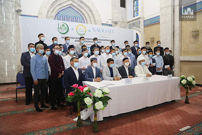 В церемонии приняли участие: директор Фонда «Салиқалы ұрпақ» Касым Касабеков, руководитель отдела религиозного образования и подготовки кадров ДУМК Смаил Сейтбеков и главный имам города Алматы Еркинбек Шокай.