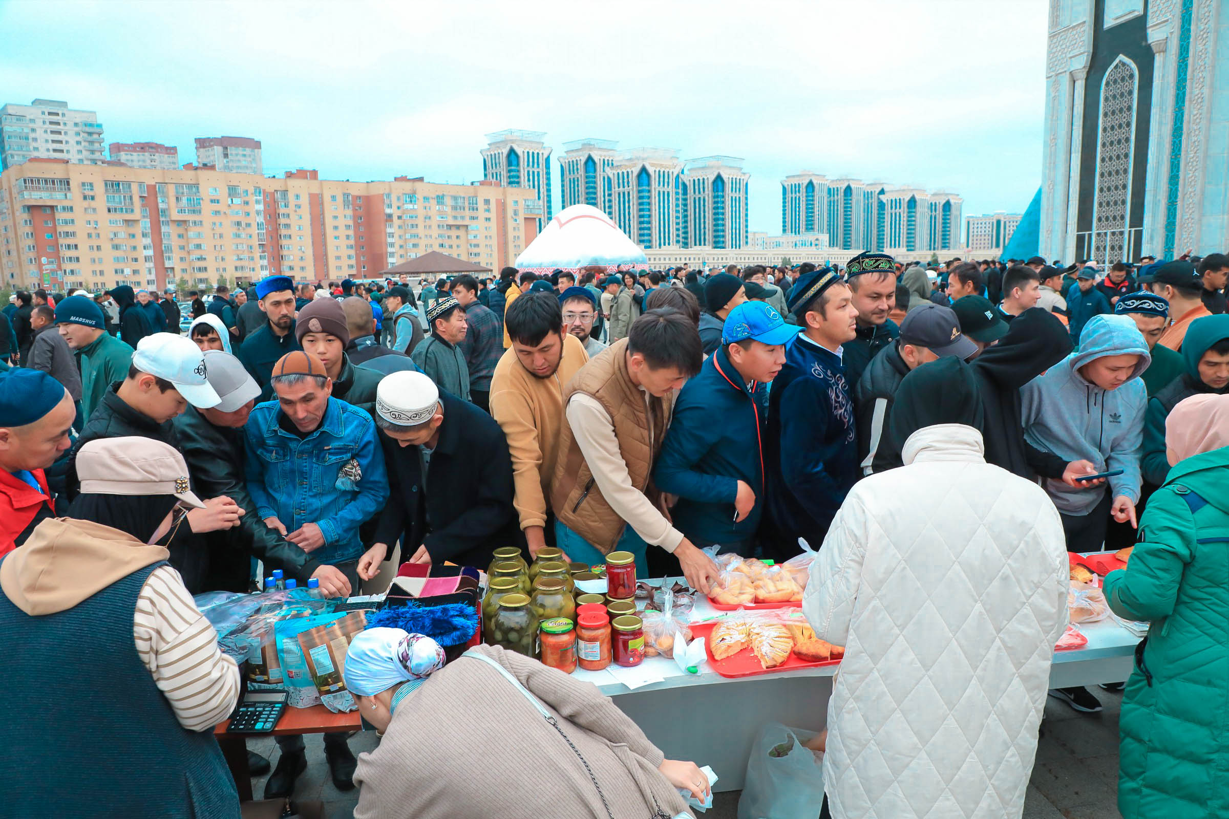 После праздничной коллективной молитвы по традиции во дворе мечети «Хазрет Султан» прошли праздничные мероприятия.