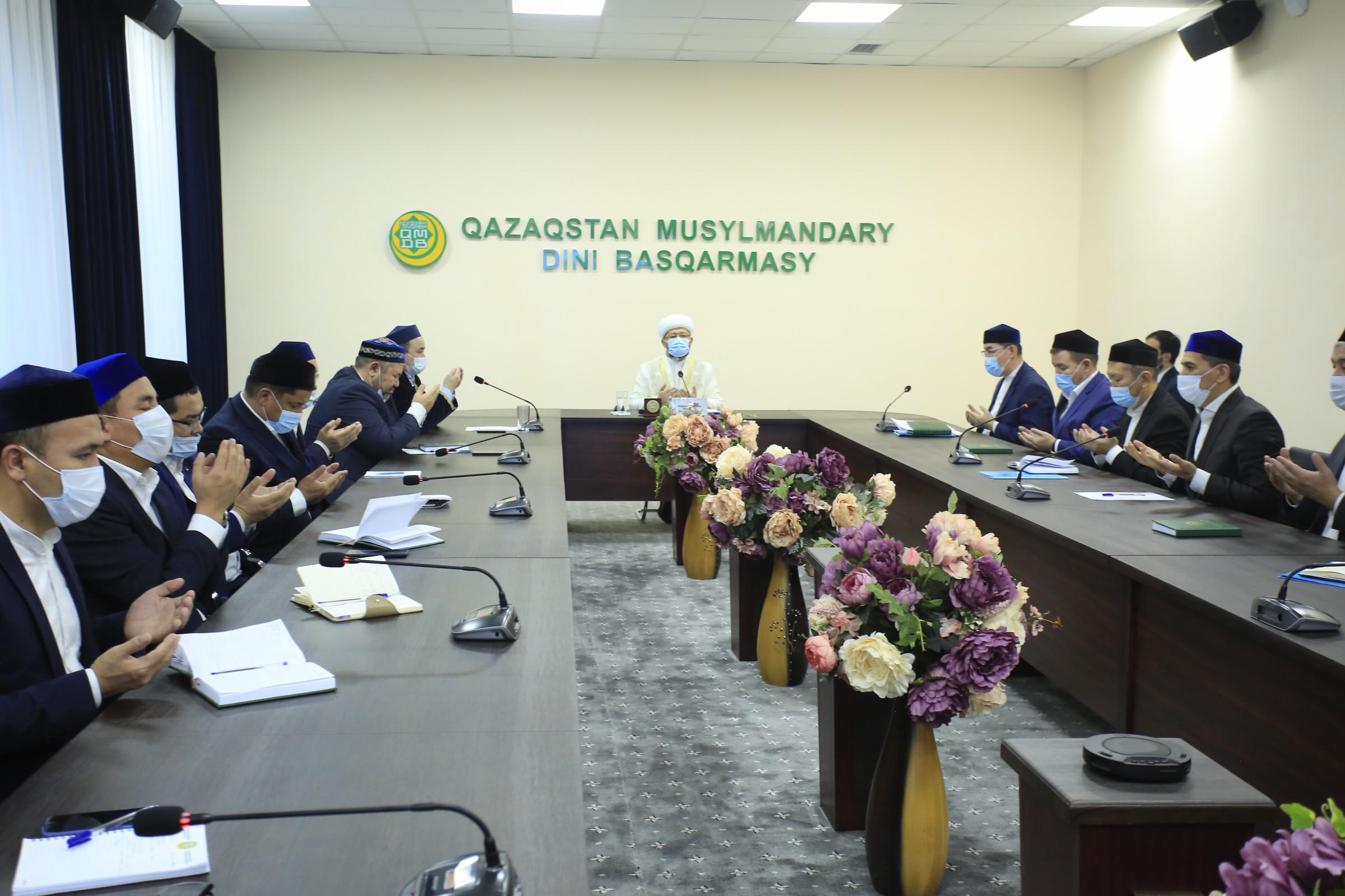 На встрече присутствовали наиб муфтии, руководители отделов ДУМК, главные имамы областей и городов республиканского значения.