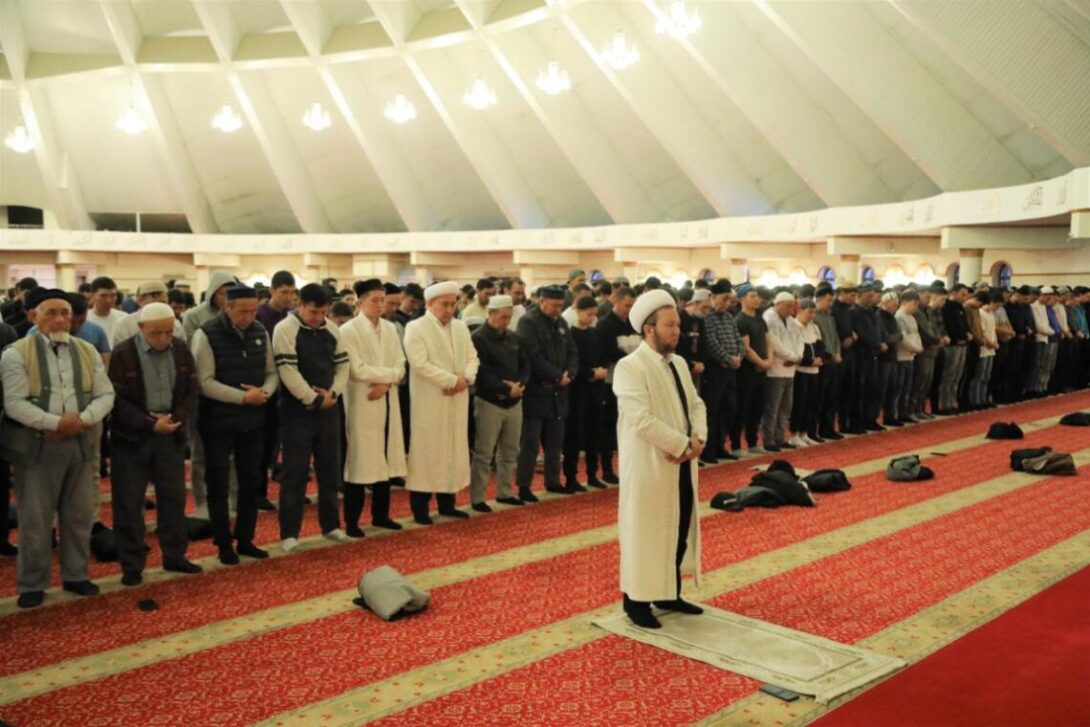 Главный имам Шымкента Бакдаулет кажы Нурматулы выступил с проповедью в главной мечети города перед молитвой таравих и поздравил собравшихся с наступлением священного месяца Рамазан.