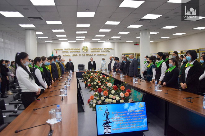 В мероприятии приняли участие заместитель Председателя ДУМК, наиб муфтий Кенжеали Коныратбайулы, главный имам г.Алматы Толеби Дадилулы и общественные деятели, артисты, работники Национальной библиотеки, представители СМИ.