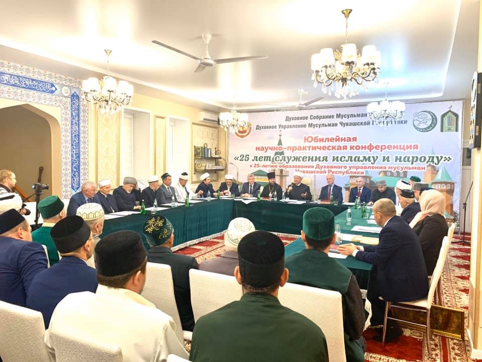 В Чувашии прошли мероприятия в рамках 25-летия со дня образования Духовного Управления Мусульман Чувашской Республики. Юбилейная научно-практическая конференция: «25 лет служения исламу и народу» к 25-летию образования Духовного Управления Мусульман Чувашской Республики прошла в мечети «Булгар» в Чебоксарах. В ее работе стола приняли участие представители органов государственной власти региона, руководство г. Новочебоксарска, Батыревского, Комсомольского и Чебоксарского районов, Государственного Совета и Общественной Палаты Чувашской Республики, представители Чебоксарско- Чувашской Епархии РПЦ, национально- культурной автономии татар, региональных муфтиятов Дагестана и Пензы, имамы и председатели приходов Чувашии. Митрополит Казанский и Татарстанский Феофан поздравил участников заседания по онлайн- трансляции.