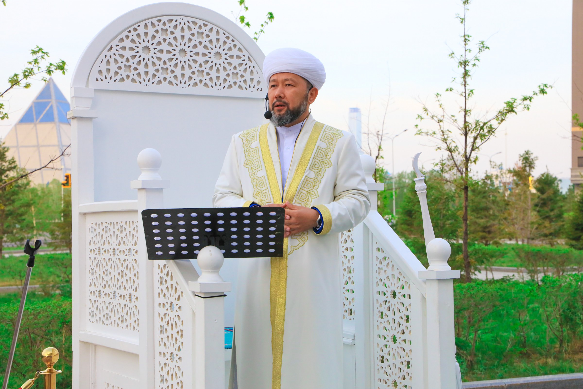 Главный имам г.Нур-Султан Ерболат Жусупов возглавил праздничный намаз и передал прихожанам праздничное приветствие.