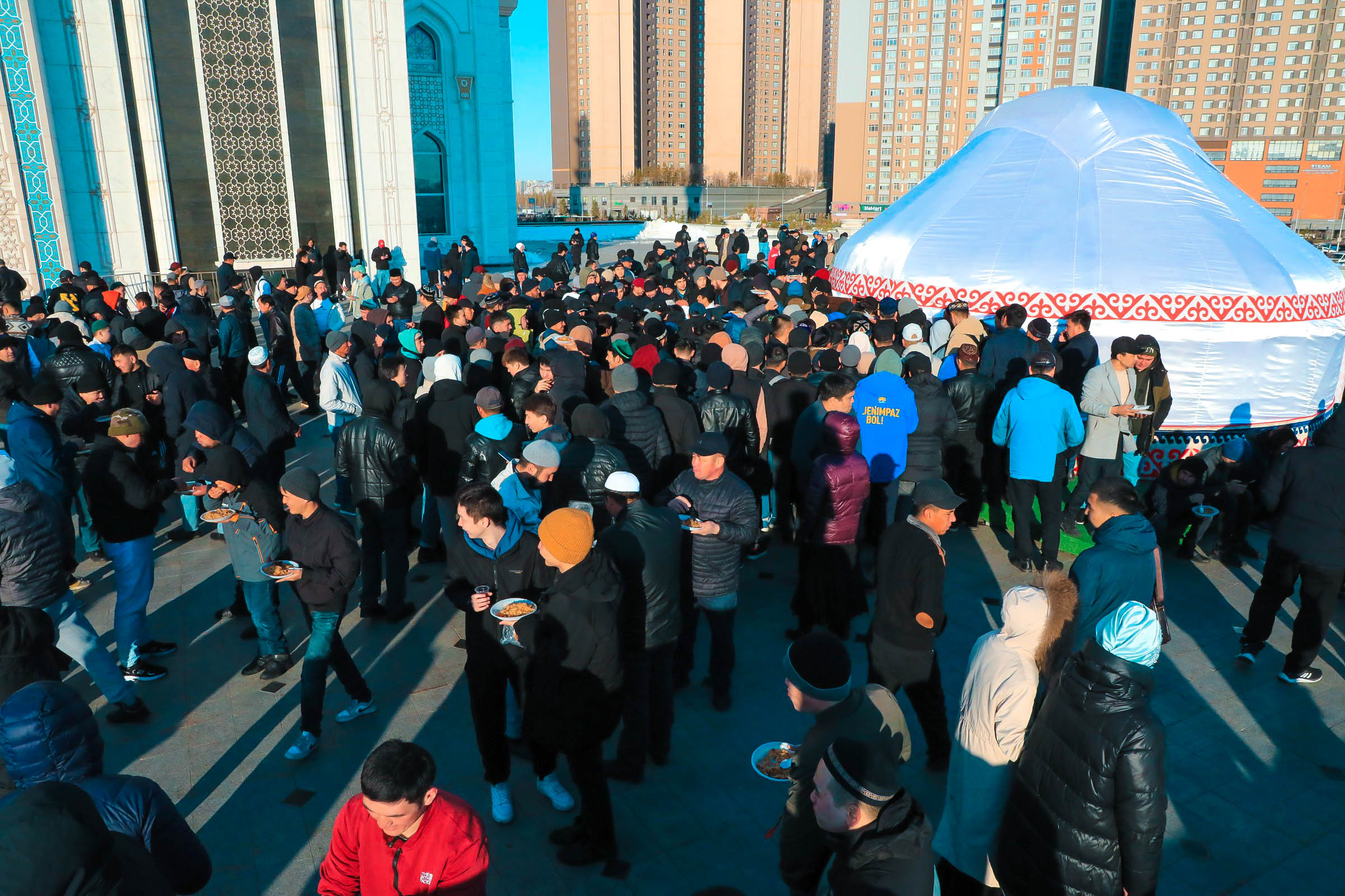 Сегодня по случаю Ураза Байрам, одного из мусульманских праздников, в столичной мечети «Хазрет Султан» был совершен праздничный намаз и проведены праздничные мероприятия. По традиции для пришедших на праздничную молитву людей были поставлены две юрты, а по инициативе Женского сектора был накрыт праздничный стол.