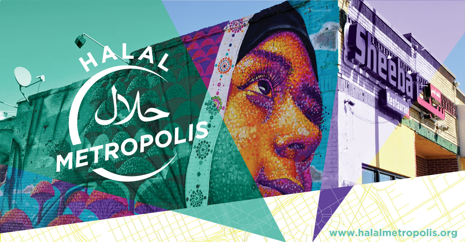 Выставка «Метрополис-Халяль» стала результатом сотрудничества между Османом Кханом, художником и доцентом Школы искусства и дизайна UM's Stamps, Рази Джафри, аспирантом и фотографом Stamps, и Салли Хауэлл, доцентом и директором Центра американских арабов Дирборна.