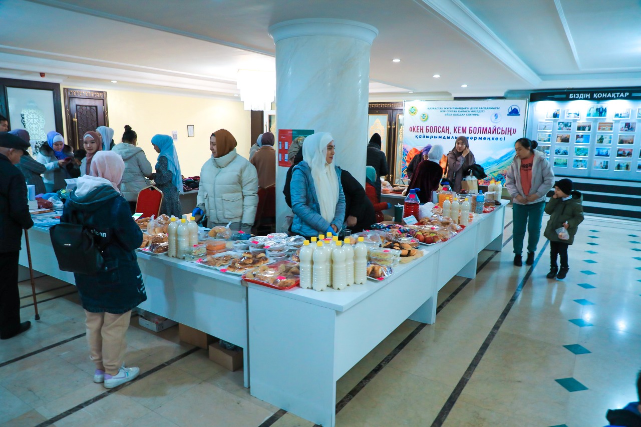 В минувшую пятницу Женским Сектором в мечети «Хазрет Султан» в Астане была организована благотворительная ярмарка. Женщины-учителя и студентки предлагали прихожанам, пришедшим на пятничную молитву, различные блюда, приготовленные ими самими, и приглашали их сделать хорошие покупки.