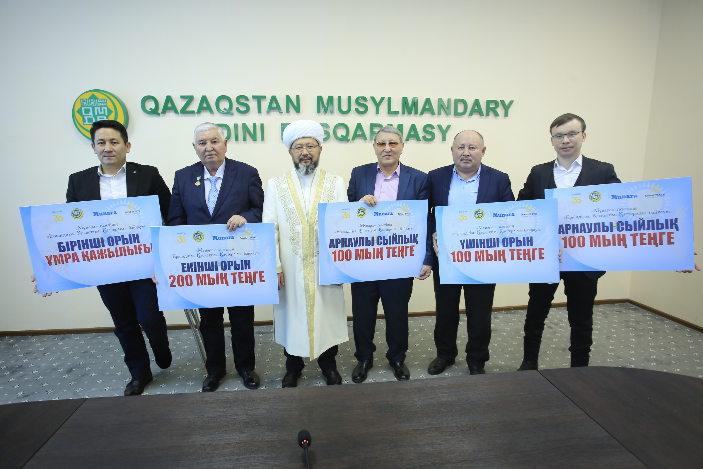«Творческий конкурс Республиканской духовно-познавательной газеты «Мұнара» под эгидой ДУМК был организован с целью популяризации творчества выдающихся людей, оставивших неизгладимый след в истории нации, достижениях страны за годы Независимости. На конкурс было представлено около 50 работ со всех регионов страны. В творческом конкурсе приняли участие ученые, писатели, учителя, имамы, религиоведы и специалисты других отраслей. Пусть Всевышний будет доволен всеми участниками, приславшими свои работы на конкурс! Пусть Всевышний дарует силу нашим отечественным писателям, общественным и научным деятелям, которые прилагают большие усилия на пути развития духовности нашей страны!» - сказал Верховный муфтий.