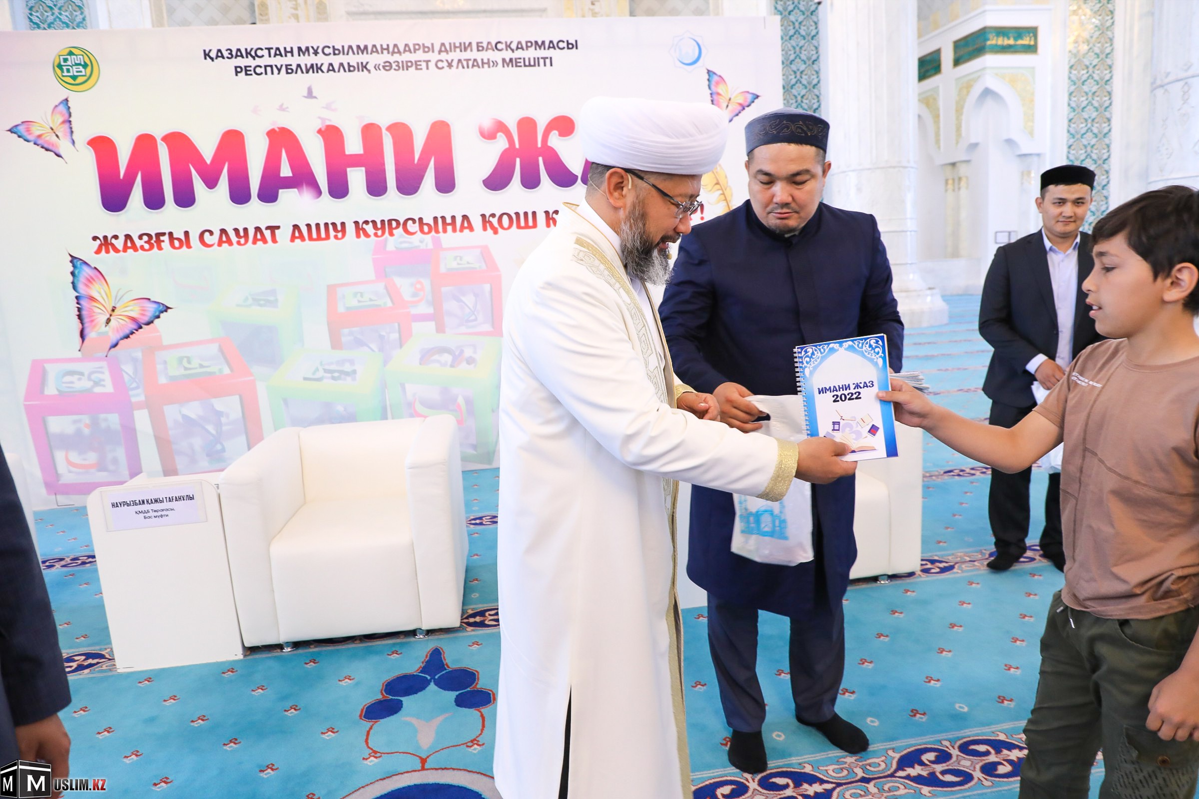 Председатель Духовного управления мусульман Казахстана, Верховный муфтий Наурызбай кажы Таганулы посетил мечеть «Хазрет Султан» г. Нур-Султан и принял участие в церемонии открытия летних курсов грамотности «Имани жаз 2022».