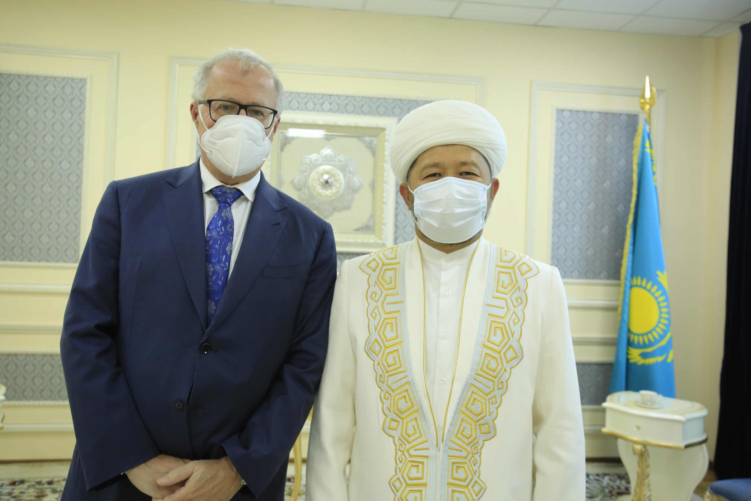 Председатель Духовного управления мусульман Казахстана Наурызбай кажы Таганулы принял Чрезвычайного и Полномочного посла Федеративной Республики Германия в Казахстане Тило Клиннера в столице.
